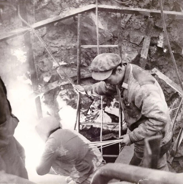 “我們年輕,想起是為了國家的核工業發展,都很有拼勁!标悜盐睦先嗽陔娫捴,對當年的工作記憶猶新:他所在的123團六連,是一個“四好標兵”連隊,也是全團坑道掘進的主攻連隊,大家實行三班制、四班倒,每個班必須在8小時內完成工作量,才能確保工程進度,“日常工作就是頭戴柳條制的安全帽,面戴防塵罩,腳穿高筒水靴,工作服外再套防水衣,使用重達50多公斤的鑿巖機突進,一個作業班下來,往往渾身濕透,筋疲力盡!