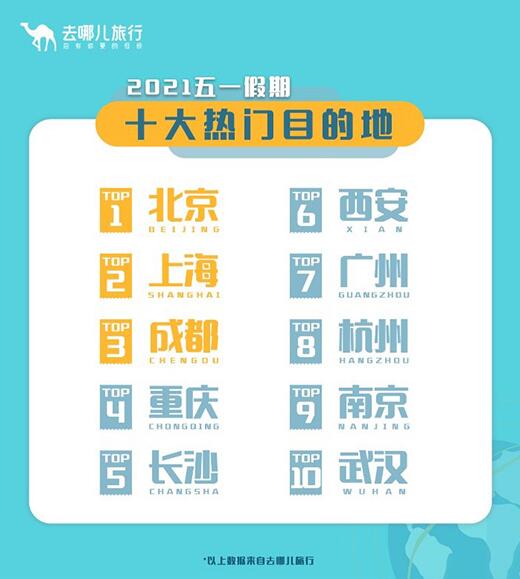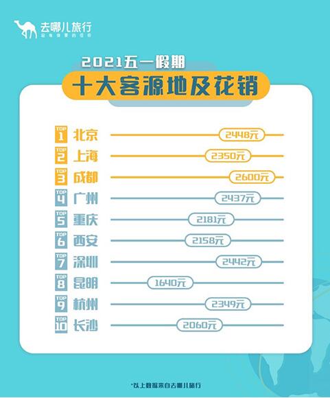 “五一”假期十大客源地及人均出游消費。去哪兒供圖