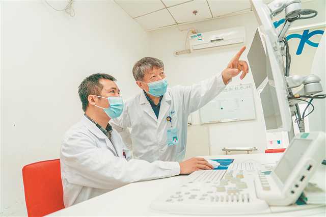 3月29日,超聲醫學工程國家重點實驗室,王智彪(右)在指導臨床醫生為患者做術前檢查。記者 崔力 攝/視覺重慶