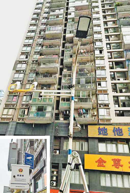 不過,仔細打量會發現,這2個攝像頭跟其他安裝得有些不一樣——它對準的方向并非人行通道,而是上方的居民樓。