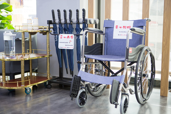 “愛心翼站”可為戶外工作者等提供輪椅和雨傘服務。重慶電信供圖