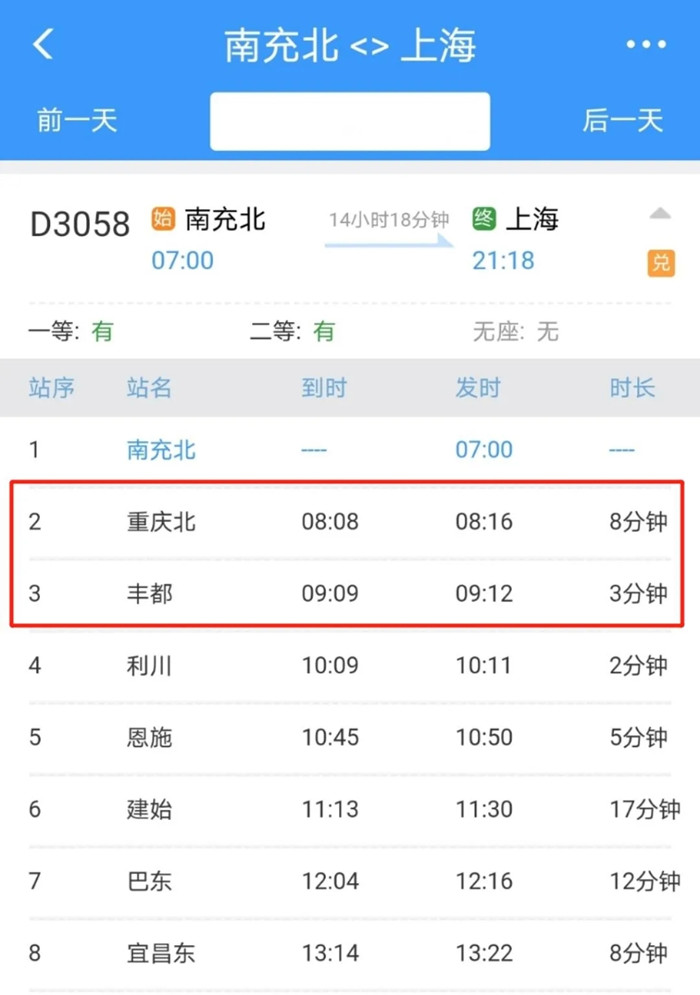 值得注意的是,其中確診病例曾乘坐的5月8日D3058次列車由四川南充發車,開往上海,途經重慶北站、豐都站。