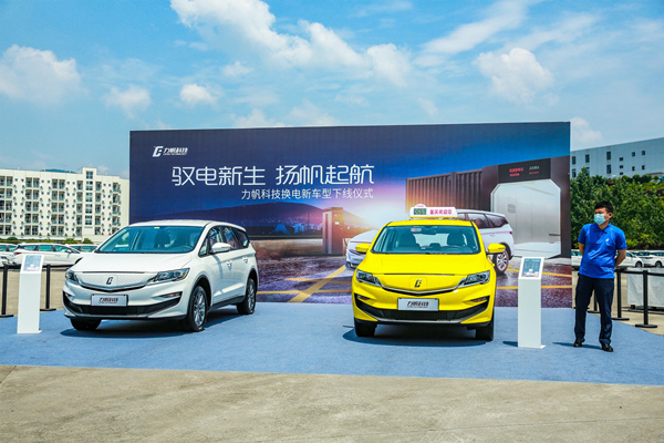 力帆科技首款換電新車型正式在重慶蔡家生產基地量產下線。力帆科技供圖