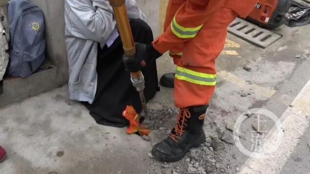 5月17日,重慶市涪陵區江東牛草塘公交站一名女學生被卡到下水道里,急需救援。涪陵區消防救援支隊指揮中心接到報警電話后,立即調派順江特勤站消防救援人員前往處置。