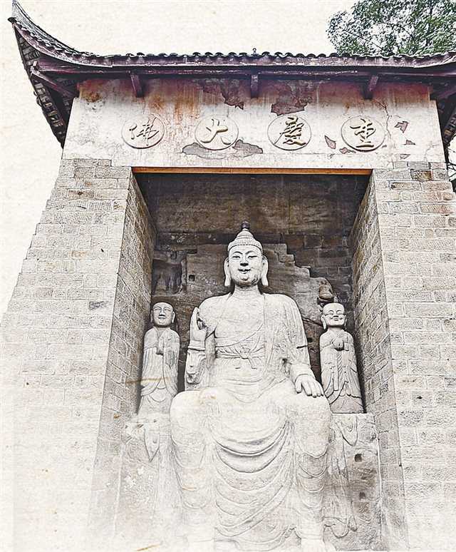 5月13日,南岸區長江之畔,7.5米高的元代大佛面帶微笑,注視著面前波濤滾滾的長江。這處全國重點文物保護單位,已和長江相伴600多年。