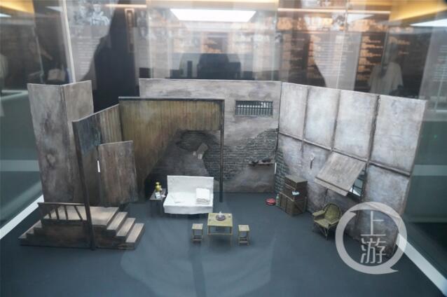 “也就是說,觀眾一邊通過老照片和文字了解抗戰時期中國話劇的魅力,一邊可以在旁邊的展柜里看到這部話劇上演時的舞臺背景!