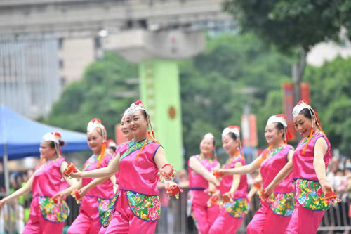 人民網重慶5月19日電 5月19日,在集體舞《永遠跟黨走》的音樂聲中,“永遠跟黨走”——“歡躍四季·舞動山城”2021重慶市廣場舞九龍坡區展演啟幕,全區400多位舞蹈隊員齊聚楊家坪步行街火熱開跳。