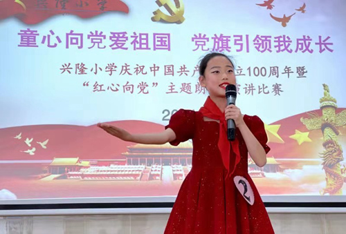 人民網重慶5月19日電 為慶祝中國共產黨建黨100周年,讓孩子們從小了解黨、熱愛黨、心向黨,近日,渝北興隆小學在渝北區興隆鎮文化服務中心舉行“童心向黨愛祖國,黨旗引領我成長”主題演講、朗誦比賽,把紅色的“種子”撒播在孩子們的心中。