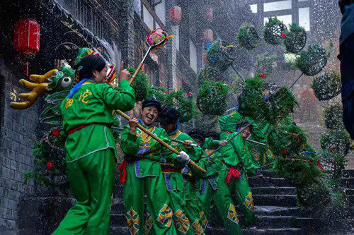 20日活動現場,在一片叫好聲中,斗志昂揚舞蹈《出征》、歌曲《土家迎客歌》等精彩節目上演,用崇高的禮節將活動推向高潮。在西沱古鎮,游客還可參觀永成商號、供銷社、熊家大院并可以體驗“西沱的你”民俗客棧。