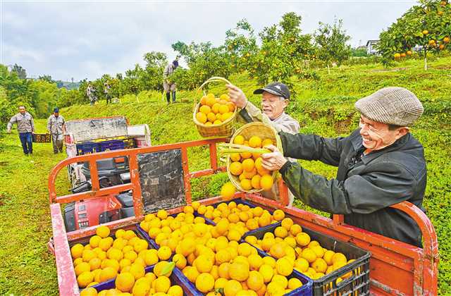 “土地宜機化整治后,我們給村民留出了糧食、蔬菜種植地塊,此外統一種植了中熟、晚熟柑橘品種,目前發展到了2350畝。年初,合作社還拿出100多萬元給社員分紅,每股約分800元!鼻帻埓妩h支部書記黃志說,“一社三部”模式解決了此前無人種地、種地成本高、產業管理不到位、產業效益低等諸多問題,村里的撂荒地現已全面消除。
