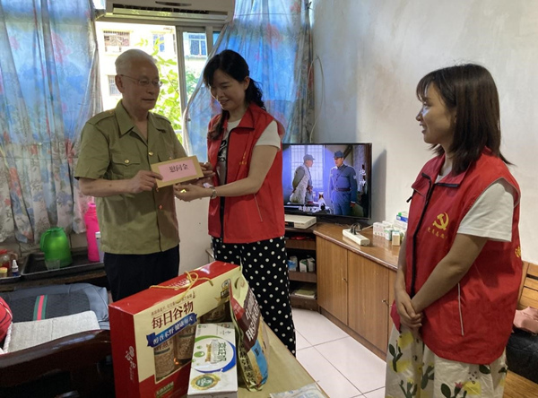黨員志愿者和入黨積極分子走訪慰問老黨員。兩路街道供圖