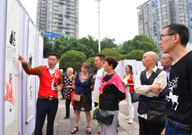 5月20日,重慶市第八屆紅櫻桃“冬日針愛——水墨丹青繪針愛”書畫公益巡展活動在我區九龍廣場舉行。140余幅愛心書畫作品吸引了眾多市民駐足觀看。