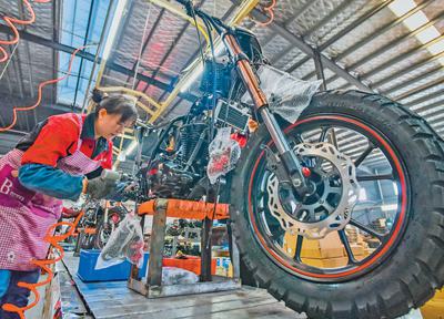 重慶一家摩托車制造企業車間里,工作人員正在生產線上加緊趕制出口訂單產品。該企業產品全部出口中美洲、南美洲、歐洲、非洲等地。