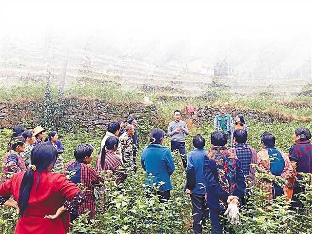 陳波(中)動員鄉親們種植豆腐柴。(受訪者供圖)