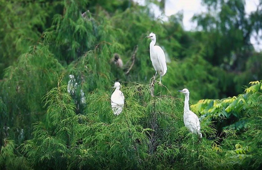 越來越多的鳥兒選擇在漢豐湖濕地安營扎寨。視頻截圖