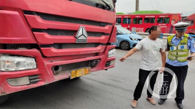 當日中午12時40分許,當寸灘勤務大隊民警在設卡開展貨運車輛整治時,發現一輛大貨車的號牌乍看之下略有蹊蹺,民警立即將該車攔停、查看情況。