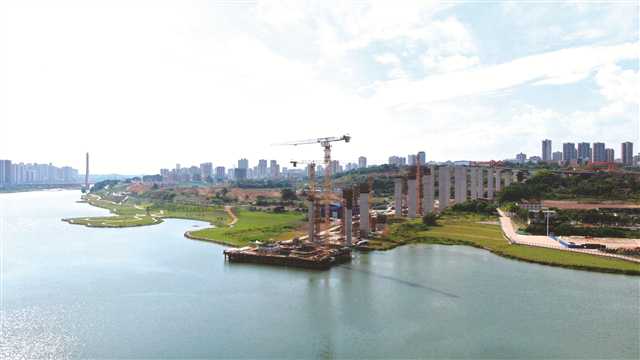 5月31日,市級重點工程——位于潼南區城市復合中心的東升大橋施工現場。東升大橋是由南向北縱貫潼南城區重要的骨干路網,已于近日完成32個承臺的施工部分,目前正在全面搶抓進度,預計明年建成通車。通訊員 楊筱箐 周勝芳 攝