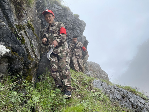 巡山便道荊棘叢生,從泥塘沼澤到懸崖峭壁,年過五旬的黃澤飛卻像猴子一樣,穿梭其間、身形敏捷,絲毫不輸年輕人。