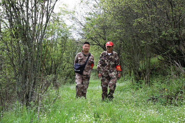 “最難防的是‘皮條子’,生活在高海拔的蛇聽力弱,而且一般都有毒!秉S澤飛說著撩起衣袖,右手臂上有兩點烏黑的傷疤,周圍皮膚有輕微潰爛過的痕跡。他說這是去年夏天巡山時被“洛鐵頭”咬傷的,當時來不及去醫院,幸好山下有懂民間“單方”的村民,及時用草藥治愈了傷口,不然自己整個手臂都難保住。
