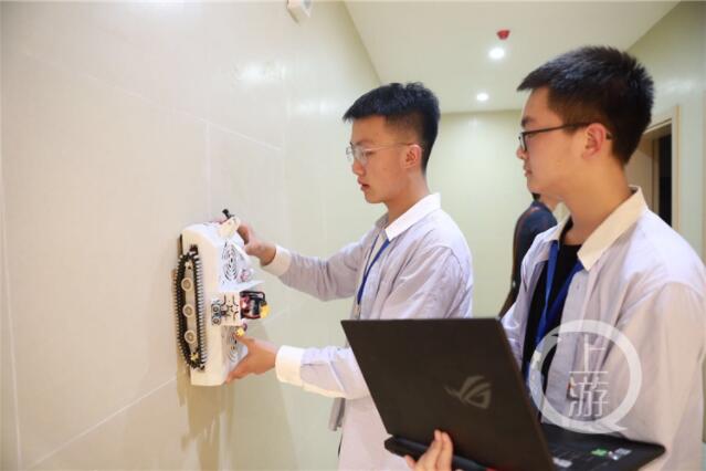 來自重慶市廣益中學校的三名高二學生發明的“智能混凝土墻體裂縫檢測機器人”獲得高中組工程物理一等獎。