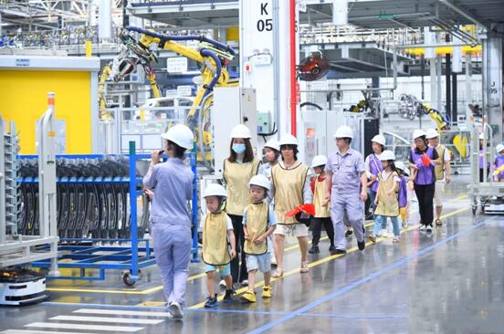 小康公司員工家庭實地參觀金康兩江工廠建設情況。共青團沙坪壩區委供圖