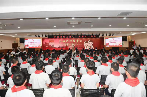 人民網重慶6月10日電 9日,重慶市沙坪壩區上橋南開小學禮堂里回蕩著嘹亮的《中國少年先鋒隊隊歌》,該校師生開展“沙磁明燈耀童心”主題隊日活動;顒又,該校少先隊員獲贈了重慶市首本以地方黨史正史為藍本的連環畫冊——《沙磁明燈——新民主主義革命時期沙坪壩黨的發展歷程圖文集》。