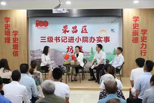 以黨史學習教育為契機,榮昌區創新開展“三級書記進小院辦實事”活動,利用“小院講堂”平臺,讓各級黨組織書記走進農家院壩、居民小區,宣講百年黨史、問需問計于民,精準發力解決一批群眾“急難愁盼”的問題。