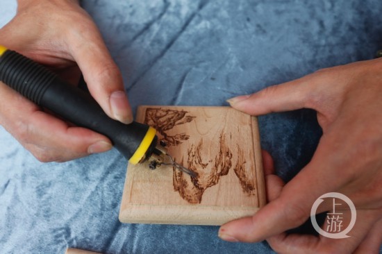 烙畫又稱火筆畫,這種中國傳統藝術珍品因用火燒熱烙鐵在物體上熨出烙痕作畫得名。區級非遺柏木坊烙畫傳承人王方明介紹說,“烙畫始于西漢,距今兩千多年,分為南北兩派。我們現在主要傳承的技藝是在宣紙、竹木上面作畫,它有種浮雕感覺,而且不會掉色,比筆墨保存時間更長!