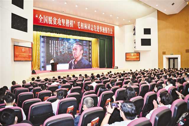 6月10日,由市委宣傳部、市人力社保局、市鄉村振興局、巫山縣委主辦的“全國脫貧攻堅楷!泵嗔滞鞠冗M事跡報告會在市委禮堂舉辦最后一場巡回報告,6位報告團成員逐一走上講臺,聲情并茂地講述了毛相林帶領村民絕壁鑿路、脫貧致富的感人故事。