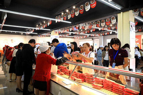 游客在百年張鴨子展示區購買張鴨子系列產品。熊偉攝