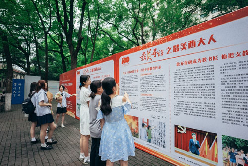 人民網重慶6月19日電 “這位95歲的醫生奶奶看起來好年輕!”“新聞專業的同學竟然去了四百公里遠的巫溪縣做報道!痹谖髂洗髮W綠意盎然的樟樹林間,八組鮮紅的巨幅展架吸引著學子們駐足觀看。從“最美初心”到“最美西大人”,從“最美建設者”到“最美奮斗者”,展板上圖文并茂的“最美”人物報道,吸引了諸多同學駐足觀看。