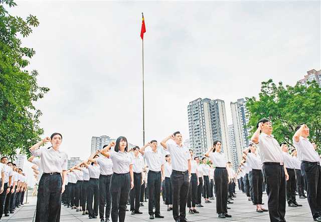 在紅巖革命紀念館宣誓活動現場,來自市直機關、市屬高校、市屬國企和渝中區的200名新黨員代表,面向黨旗莊嚴宣誓,4名新黨員代表發言,表達矢志入黨心路歷程,表明不懈奮斗堅定決心。廣大新黨員紛紛表示,在我們黨迎來百年華誕的光輝時刻宣誓入黨,具有特殊意義,值得永遠銘記,將把光榮加入黨組織煥發出的激情熱情轉化為真抓實干的實際行動,做到一心愛黨、一生為黨。