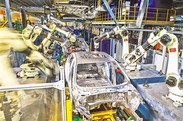 3月4日,長安汽車兩江工廠,智能焊接車間,忙碌的機器人手臂。(資料圖片)首席記者 龍帆 攝/視覺重慶