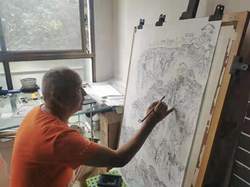 今年75歲的秦廷光曾分配到銅梁報社負責美術編輯工作,退休后,秦廷光對藝術創作沒有放棄,筆耕不輟地創作了大量的美術作品。他為人所熟知的鄉愁系列,用白描的畫法重現老重慶和老巴川、安居古城,讓人們記住鄉愁;《銅梁龍燈》系列畫作,則讓世人了解銅梁區的非物質文化遺產。