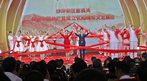 人民網重慶6月24日電 24日,重慶市沙坪壩區“永遠跟黨走——區直機關慶祝建黨100周年‘兩優一先’表彰暨文藝演出”舉行。65個區級部門主要負責人、機關黨組織書記、黨員代表等300余人參加活動。
