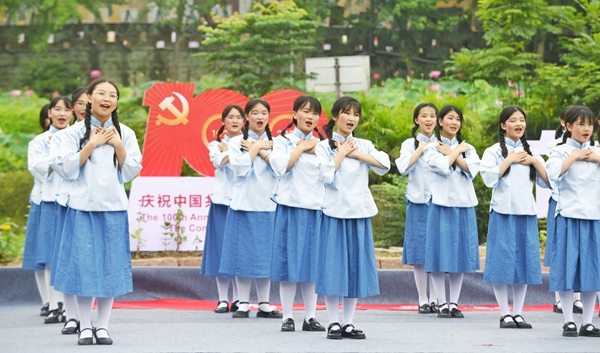 人民網重慶6月25日電 (胡虹)荷田邊,清風徐來,荷葉搖擺,一曲《唱支山歌給黨聽》拉開了荷田音樂節的序幕。25日上午,重慶市鄉村學校少年宮“童心向黨”荷田音樂節在合川區育才學校鄉村學校少年宮的陶荷園內舉行。孩子們通過一首首經典歌曲,用自己稚嫩的歌聲,燦爛的笑容,表達出愛黨愛國愛社會主義之情,進一步筑牢理想信念,傳承紅色基因。