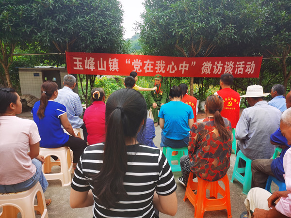 人民網重慶6月26日電 為發揮先進模范感召人、影響人、帶動人的作用,近日,渝北區玉峰山鎮在玉峰村院壩開展“黨在我心中”微訪談活動,活動邀請到今年87歲的老黨員、退役軍人王明友為在場村民憶崢嶸話初心。