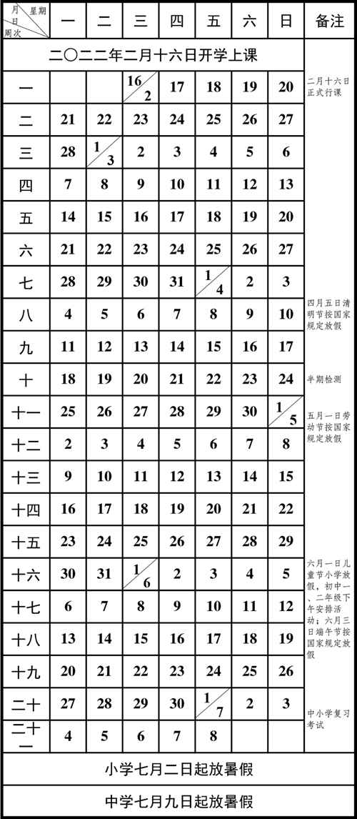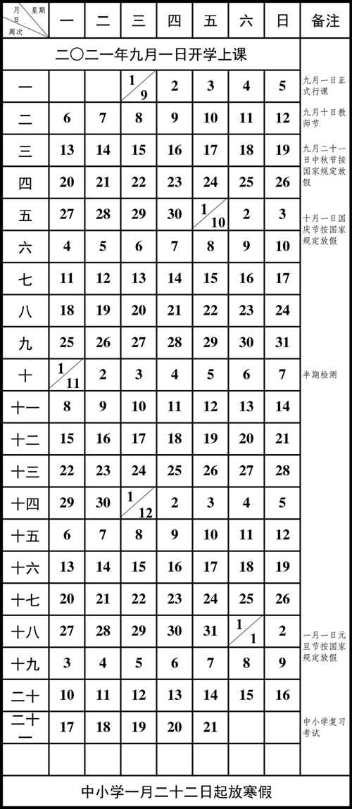 值得一提的是,《通知》內的重慶市中小學2021至2022年學年度校歷適用于重慶市所有全日制中小學校和中等職業學校。每周實行五天工作制度,法定節假日按國家規定執行。(記者 姜念月)
