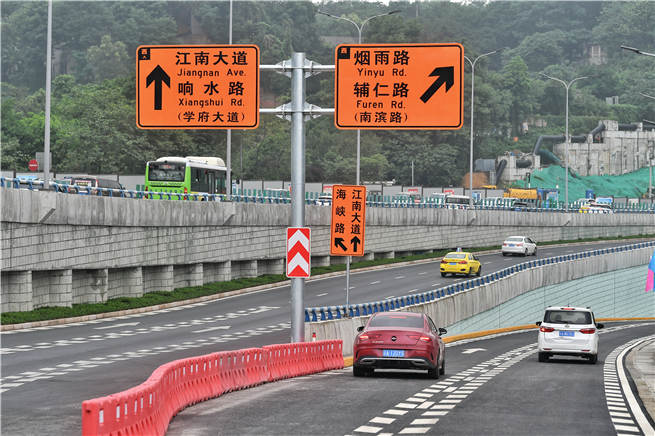 二是新增內環快速路至海峽路輔道,以及內環下穿隧道和縱二路等,不僅解決四公里換乘樞紐的長途汽車進出內環問題,更完善了海棠溪片區的交通路網,將內環快速路進入煙雨路的交通進行隔離分流,避免與海峽路的交通相互干擾。