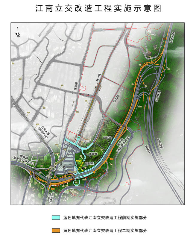 南岸區住建委相關負責人介紹,江南立交改造工程主要采取以下措施,來改善交通擁堵的現狀: