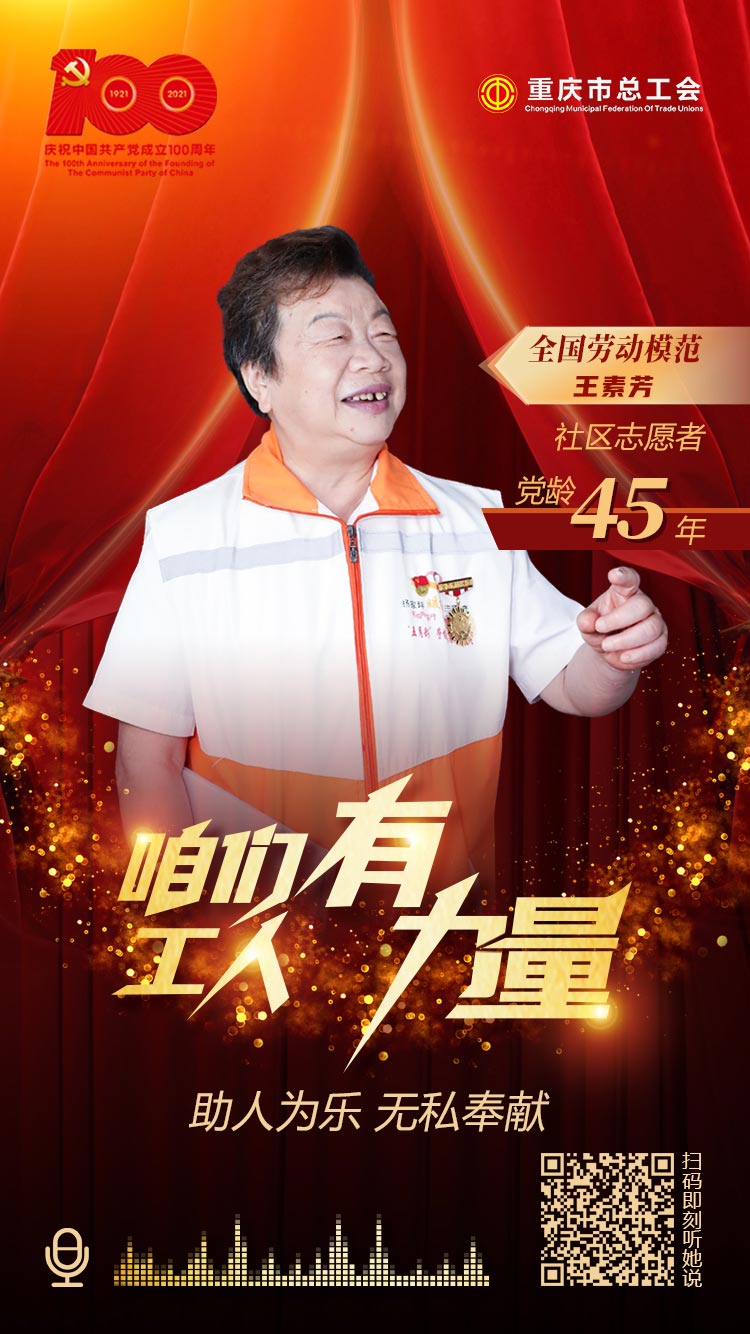 我是全國勞動模范王素芳,入黨45年了,我是一名社區志愿者,弘揚志愿服務精神給了我力量,讓我永遠走在共建美好幸福家園的路上。