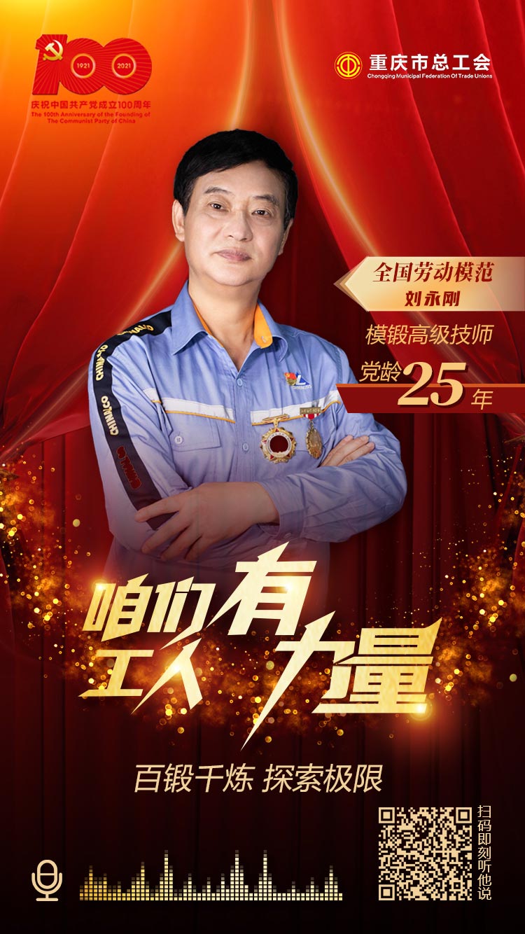 我是全國勞動模范劉永剛,入黨25年了,我是一名模鍛高級技師,鍛造技術的不斷突破給了我力量,讓我一直走在振新國防軍工事業和國家民族工業的路上。
