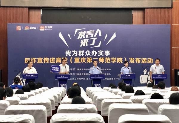 人民網重慶6月29日電 騙子如何知道信息的?快遞單上的信息泄露會被轉移錢財嗎?被騙的錢財可以追回嗎?28日下午,由南岸區委宣傳部、南岸區政府新聞辦主辦的“發言人來了——我為群眾辦實事”反詐宣傳進高校(重慶第二師范學院)發布活動在重慶第二師范學院南山校區舉行。