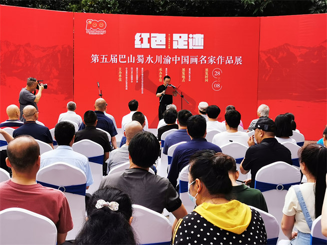 人民網重慶6月29日電 (陳琦)28日下午,由渝北區委宣傳部、四川省中國畫學會、重慶市中國畫學會聯合舉辦的“紅色足跡·巴山蜀水長征路”第五屆巴山蜀水川渝中國畫名家寫生作品展亮相渝北區兩江美術館。
