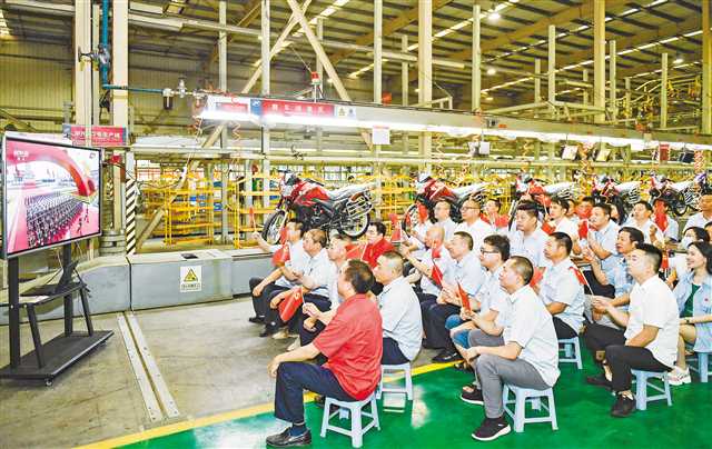 7月1日,力帆科技(集團)股份有限公司,職工們收看慶祝中國共產黨成立100周年大會直播。記者 齊嵐森 攝/視覺重慶