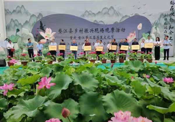 人民網重慶7月6日電 “萬木蔥蘢夏已至,又是一年荷花香!6日,重慶市墊江縣舉辦鄉村振興現場觀摩活動——第二屆荷蓮文化節暨墊江縣“三社”融合銀農合作啟動儀式。