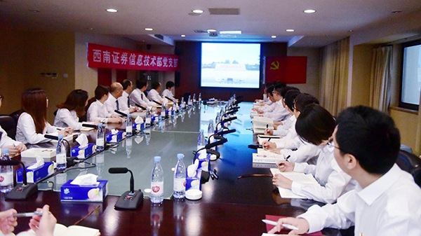 信息技術部黨支部集中開展黨史學習。西南證券供圖