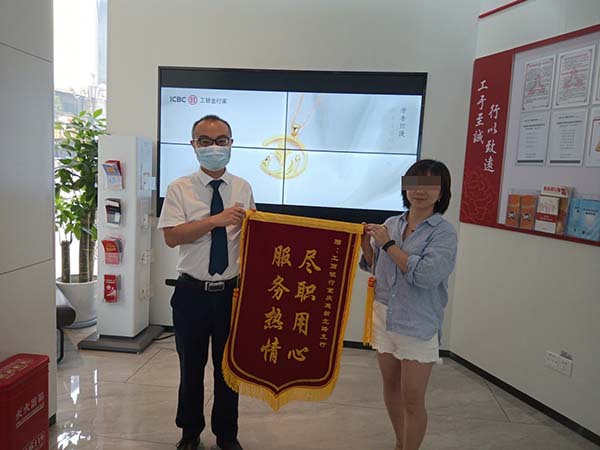 成功兌換殘損幣的客戶為工行重慶建北支行送來錦旗。工行重慶市分行供圖