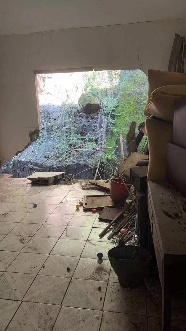 危巖崩塌崩塌造成房屋一面墻完全損毀。南江地質隊供圖