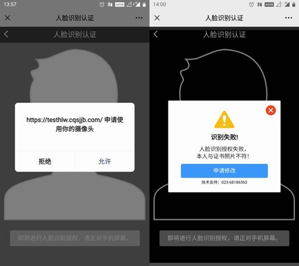 通過人臉識別后才能下載證書。重慶市住房城鄉建委供圖